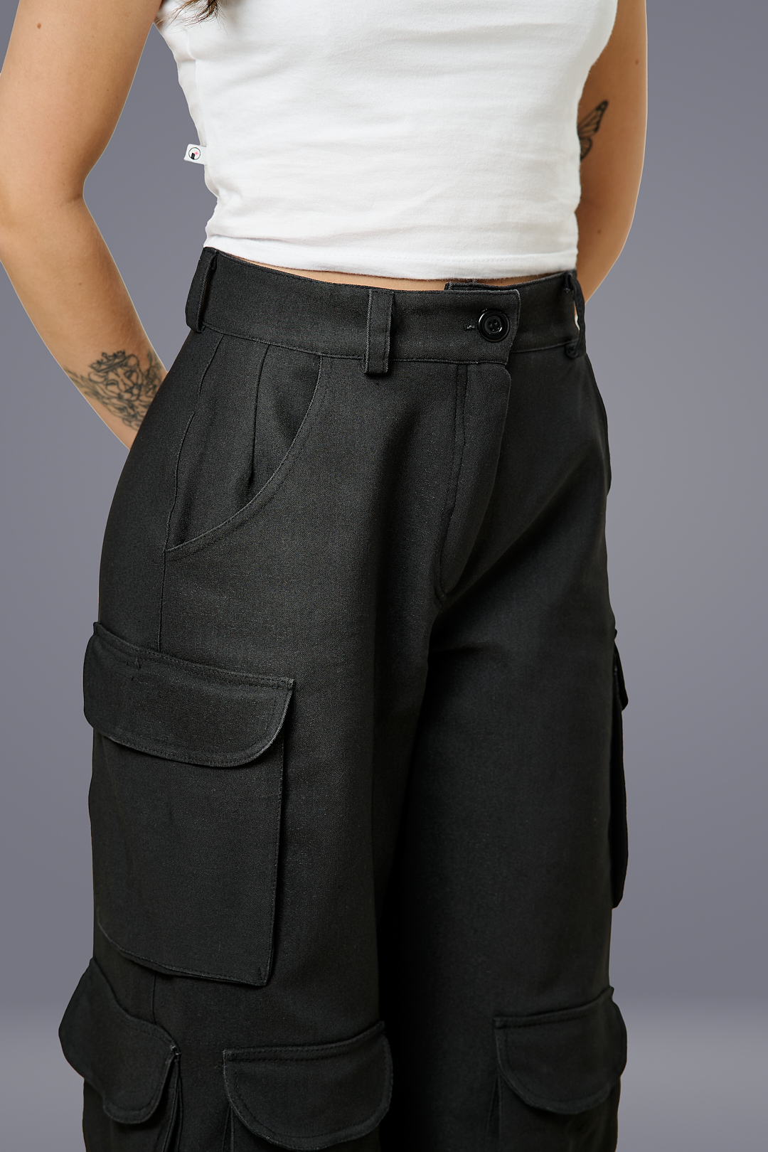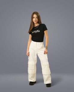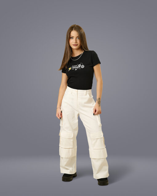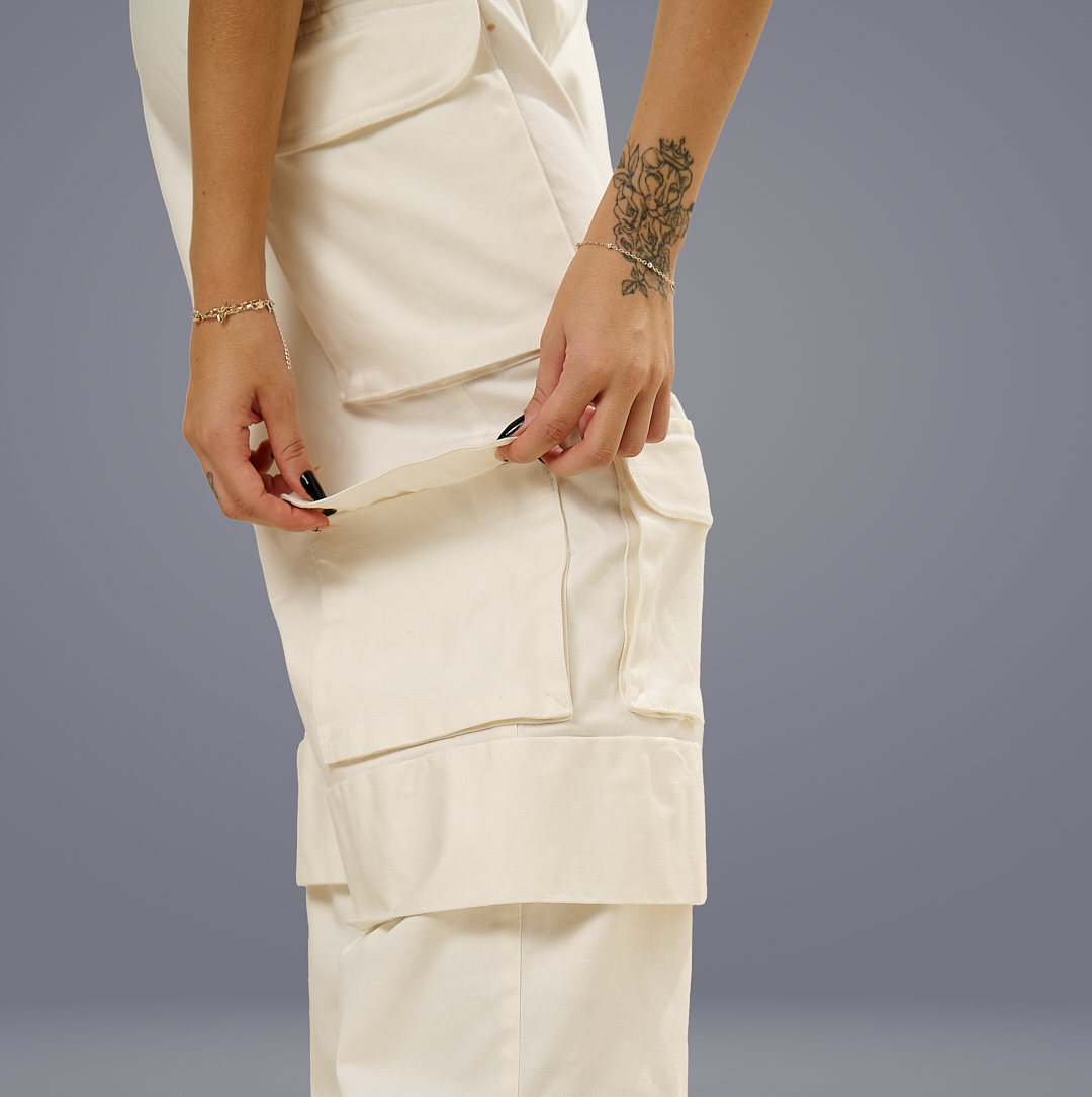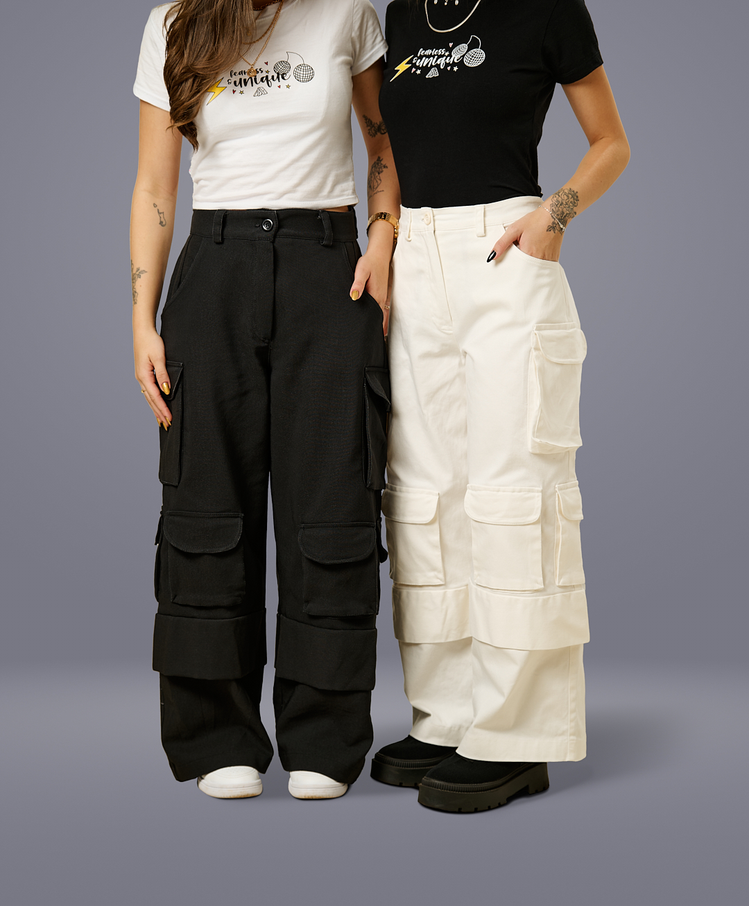 Os bolsos cargo adicionam estilo e funcionalidade na medida certa! Disponível em preto clássico e branco sofisticado